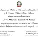Este viernes 31 de mayo el presidente del Círculo Lígure de La Plata, Mauricio Tarsitano fue invitado por el embajador de Italia en Argentina Giuseppe Manzo a los festejos por el 73° aniversario de la República Italiana. Mas allá del anfitrión y su esposa la Sra. Alma Hado Manzo, estuvieron presentes el subsecretario de asuntos exteriores del Ministerio de Relaciones Exteriores de Italia, Ricardo Merlo, el Cónsul General de Buenos Aires Riccardo Smimmo y el Cónsul Adjunto Gianluca Guerriero, el Cónsul General de La Plata Nicola Occhipinti, el presidente de FEDITALIA Julio Croci, Lino Barañao, secretario de Ciencia y Tecnología, Fabián Perechodnik, secretario general de la provincia de Buenos Aires, Gustavo Ferrari, ministro de Justicia de la provincia de Buenos Aires representantes del CGIE y de los diferentes COMITES, agregados culturales y militares de la embajada e invitados de comitivas extranjeras.