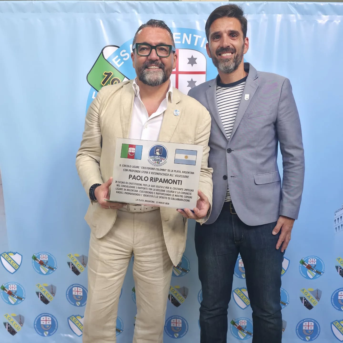 La visita se dio en el marco de los 125 años de la Asociación Carboneros Genoveses de Buenos Aires en la Legislatura de CABA, donde tambien compartimos un grato momento con el Cónsul General de Italia Carmelo Barbera, una fecha muy especial que celebra la trayectoria, el esfuerzo y el legado de tantas generaciones de inmigrantes ligures y quisimos homenajear a nuestros anfitriones entregándoles también una placa conmemorativa por su 125° aniversario, en reconocimiento a su historia y a su aporte fundamental a la colectividad ligur en la Argentina.