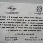 I festeggiamneti per il 2 giugno sono iniziati a Buenos Aires, nell´Ambasciata Italiana, con l´invito al presidente Tarsitano da parte dell´ambasciatore Giuseppe Manzo, con la presenza tra l´altro del sottosegretario agli Esteri Ricardo Merlo, dei Consoli di Buenos Aires Riccardo Smimmo e Gianluca Guerriero e di La Plata Nicola Occhipinti.